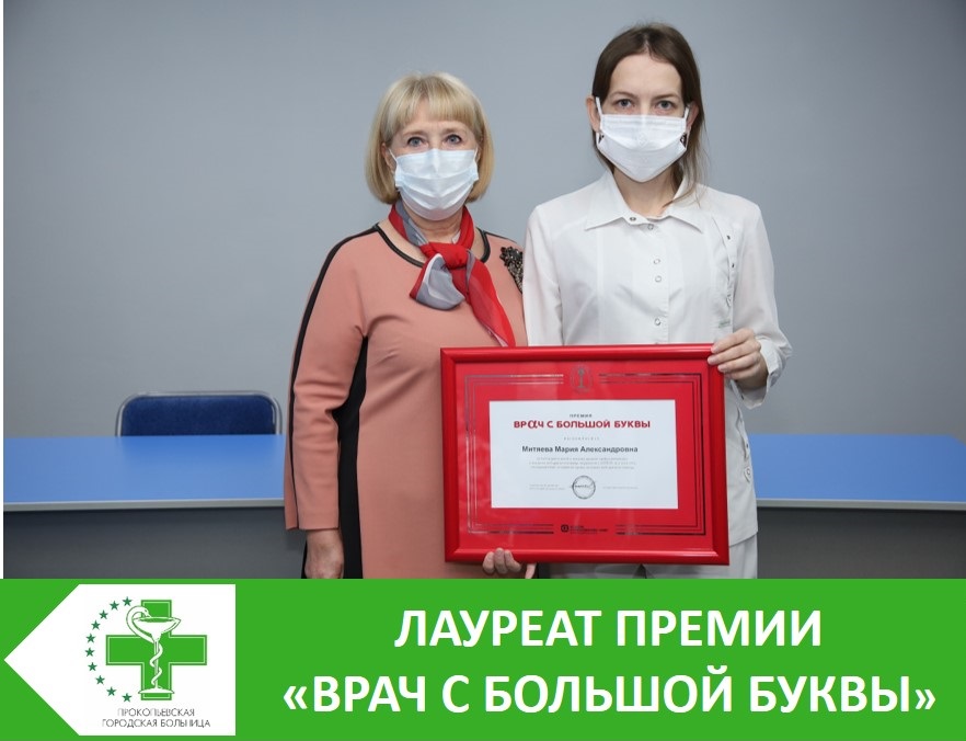24 декабря при поддержке заместителя Губернатора Кузбасса по вопросам социального развития Алексея Марковича Цигельника и Министра здравоохранения Кузбасса Михаила Васильевича Малина состоялось награждение лауреата премии «Врач с большой буквы», которую учредила компания «АльфаСтрахование - ОМС». Награждена Митяева Мария Александровна, врач отделения для лечения пациентов с COVID-19 ГАУЗ «Прокопьевская городская больница».