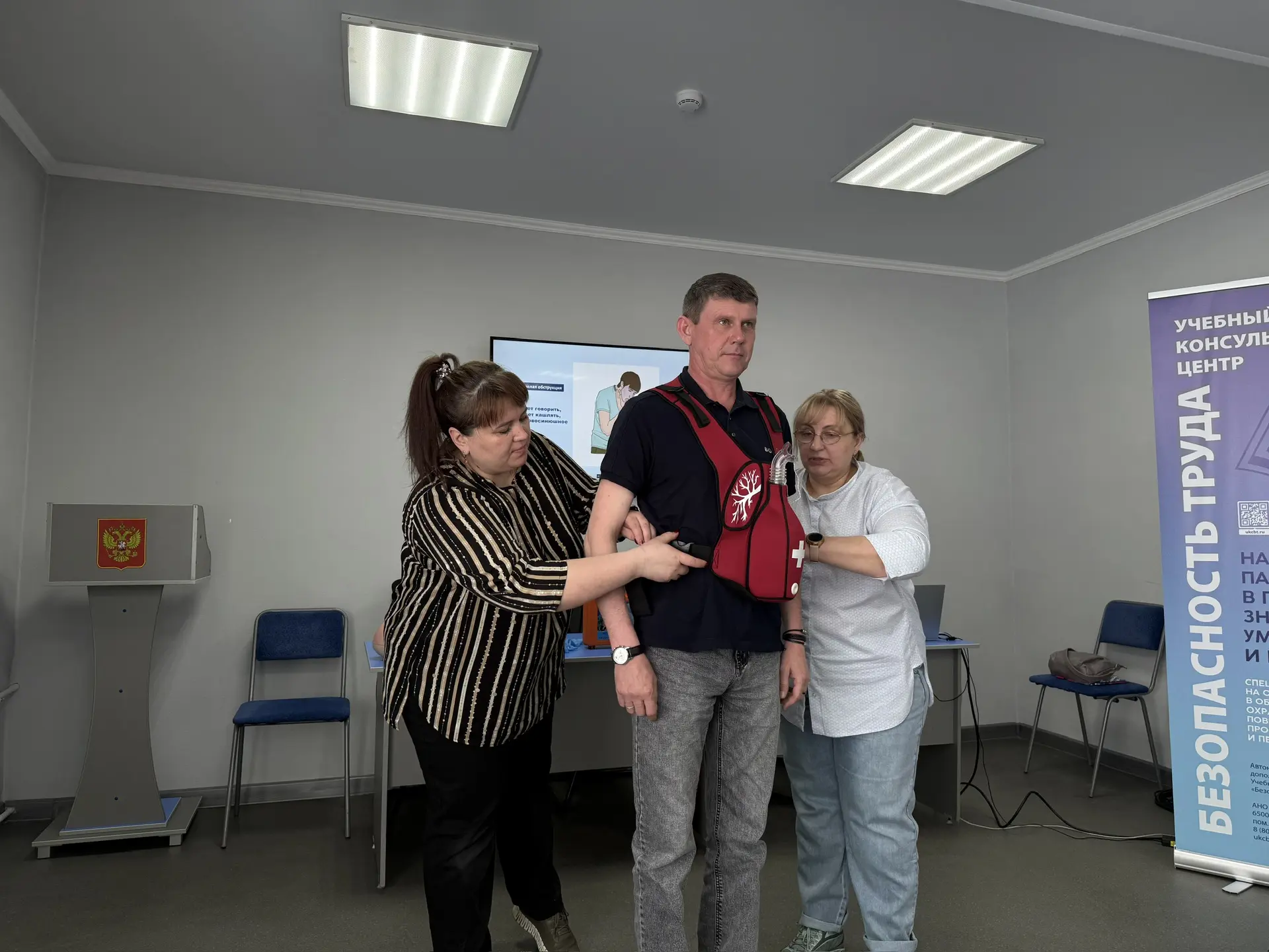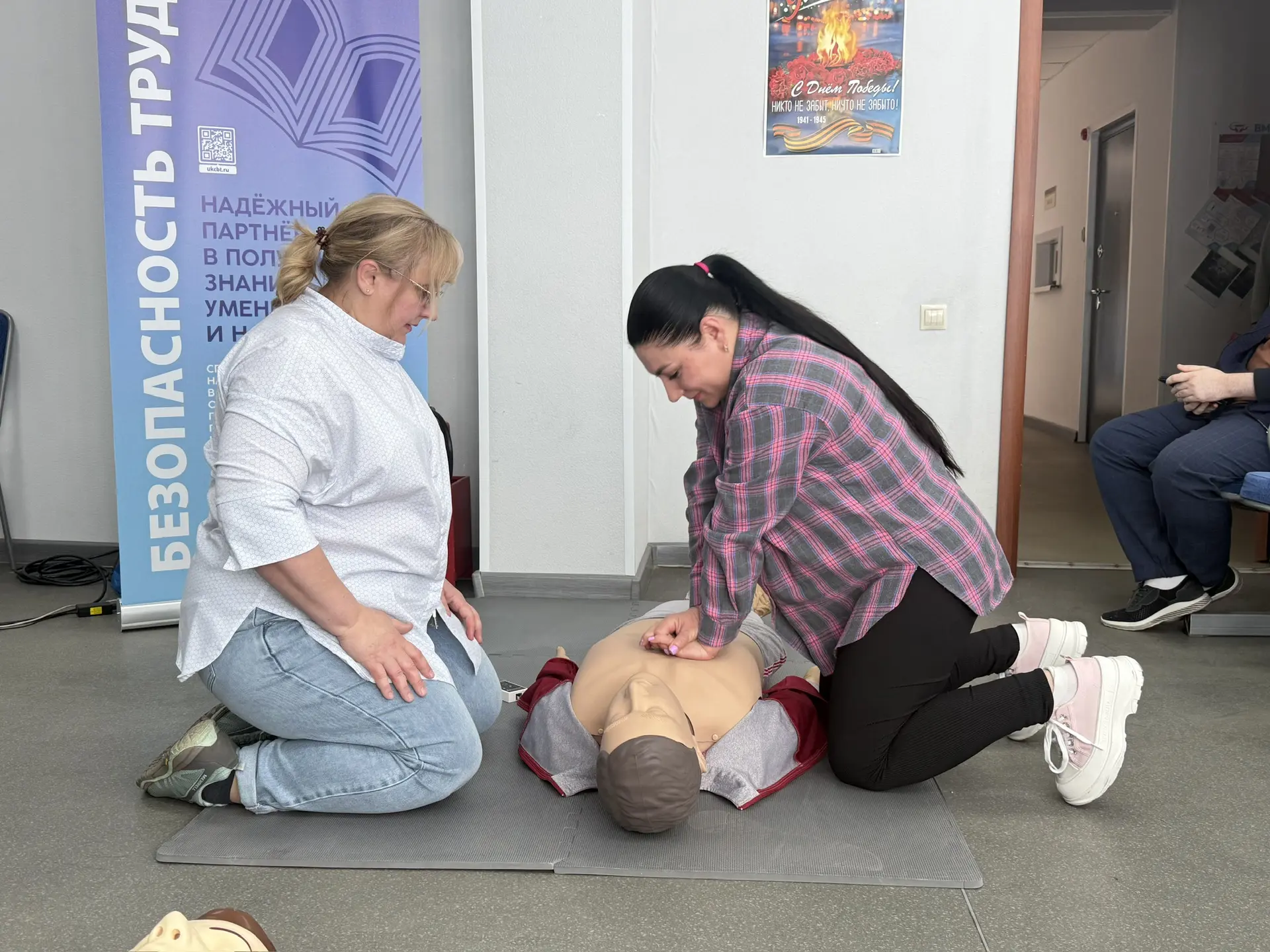 Накануне Всемирного дня охраны труда учебно-консультационный центр «БЕЗОПАСНОСТЬ ТРУДА» провёл для прочего персонала очень полезный (или реалистичный, вариант: «жизненный» здесь стилистически неверно, лучше «жизненно важный») мастер-класс по первой помощи.