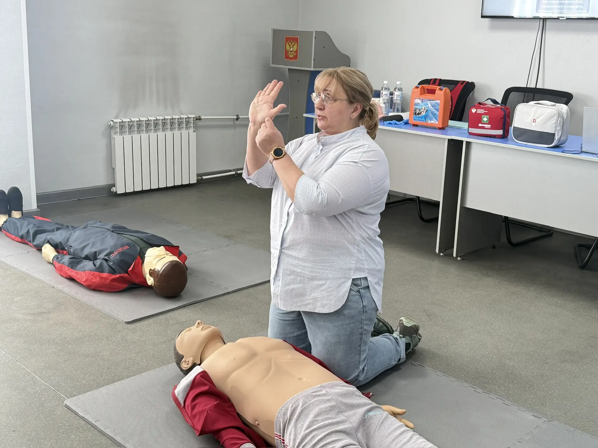 ✅ Сердечно-лёгочная реанимация взрослых. Это не то, что показывают в кино. На манекенах мы отрабатывали ритм, глубину нажатий и поняли, что это тяжёлый физический труд.