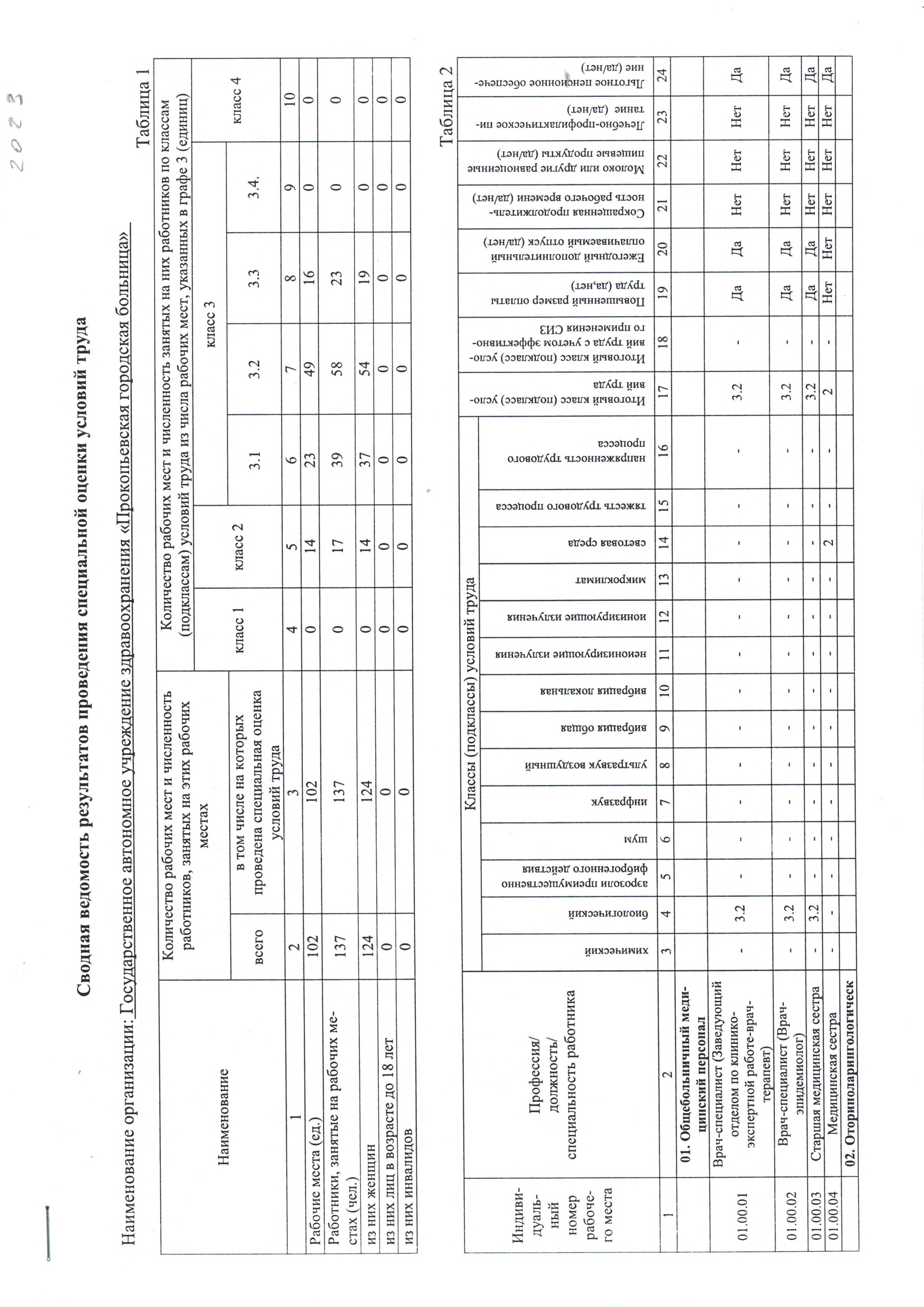 Свод данных о результатах проведения специальной оценки условий труда в части установления классов (подклассов) условий труда на рабочих местах и перечня мероприятий по улучшению условий и охраны труда работников, на рабочих местах которых проводилась специальная оценка условий труда.