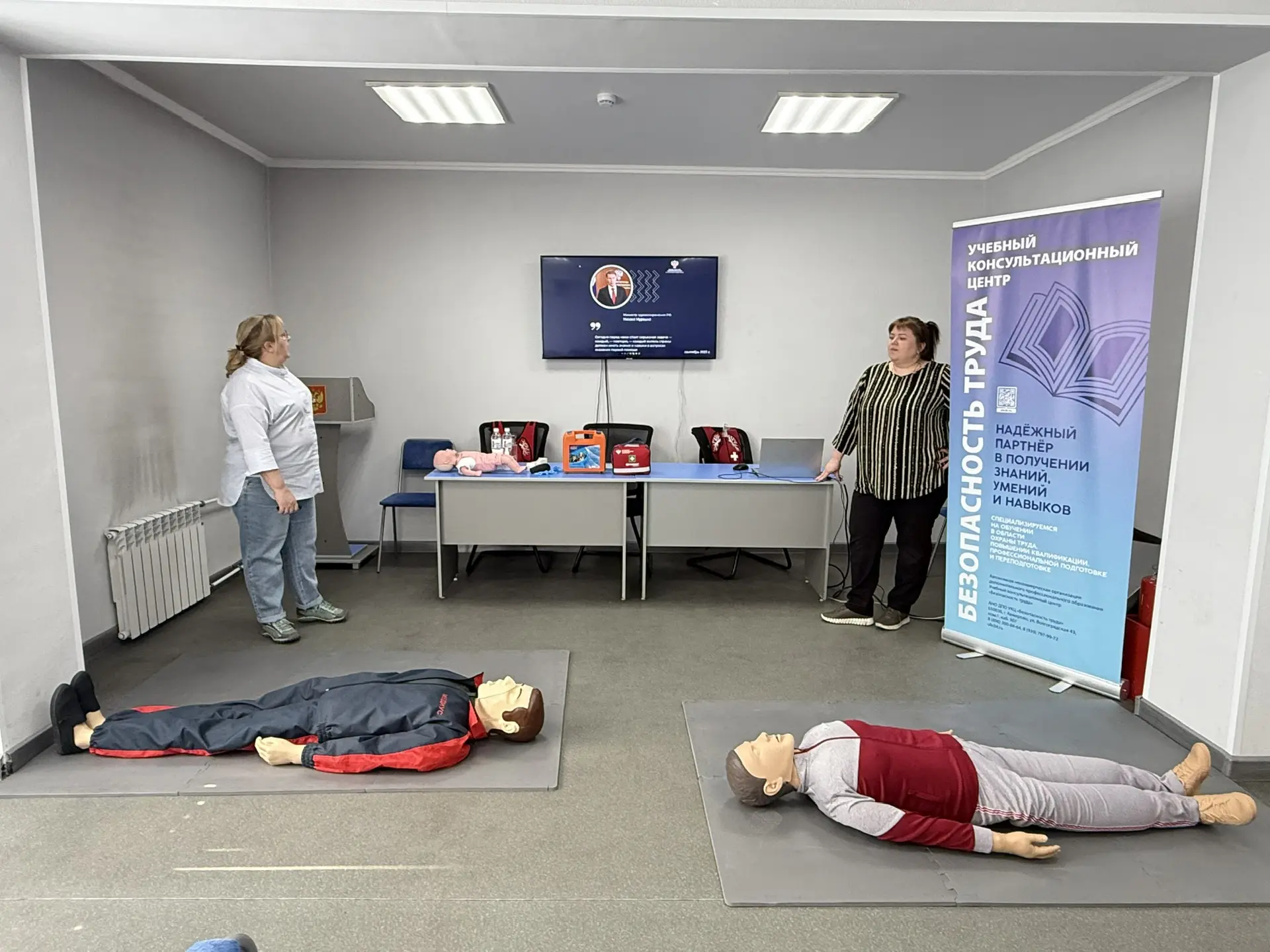 Накануне Всемирного дня охраны труда учебно-консультационный центр «БЕЗОПАСНОСТЬ ТРУДА» провёл для прочего персонала очень полезный (или реалистичный, вариант: «жизненный» здесь стилистически неверно, лучше «жизненно важный») мастер-класс по первой помощи.